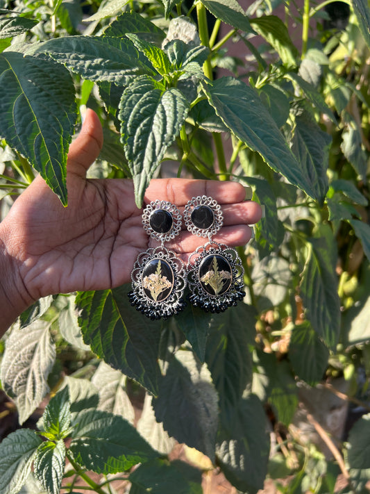 Flower Infused Jhumka- Black