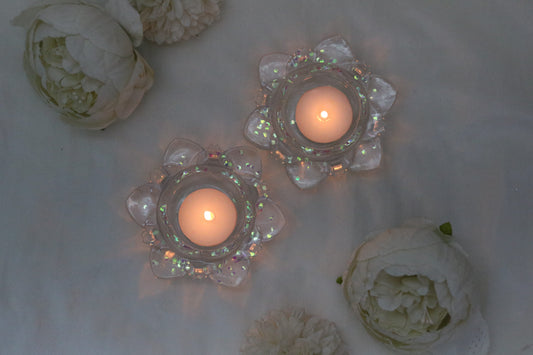 Crystal-Clear Lotus Diyas with Shimmering Accents- Set of 25 Pair