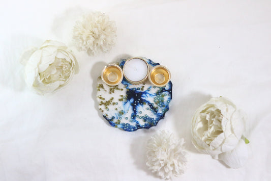 "Azure Majesty Resin Pooja Thali – A Regal Addition to Your Festive Rituals"