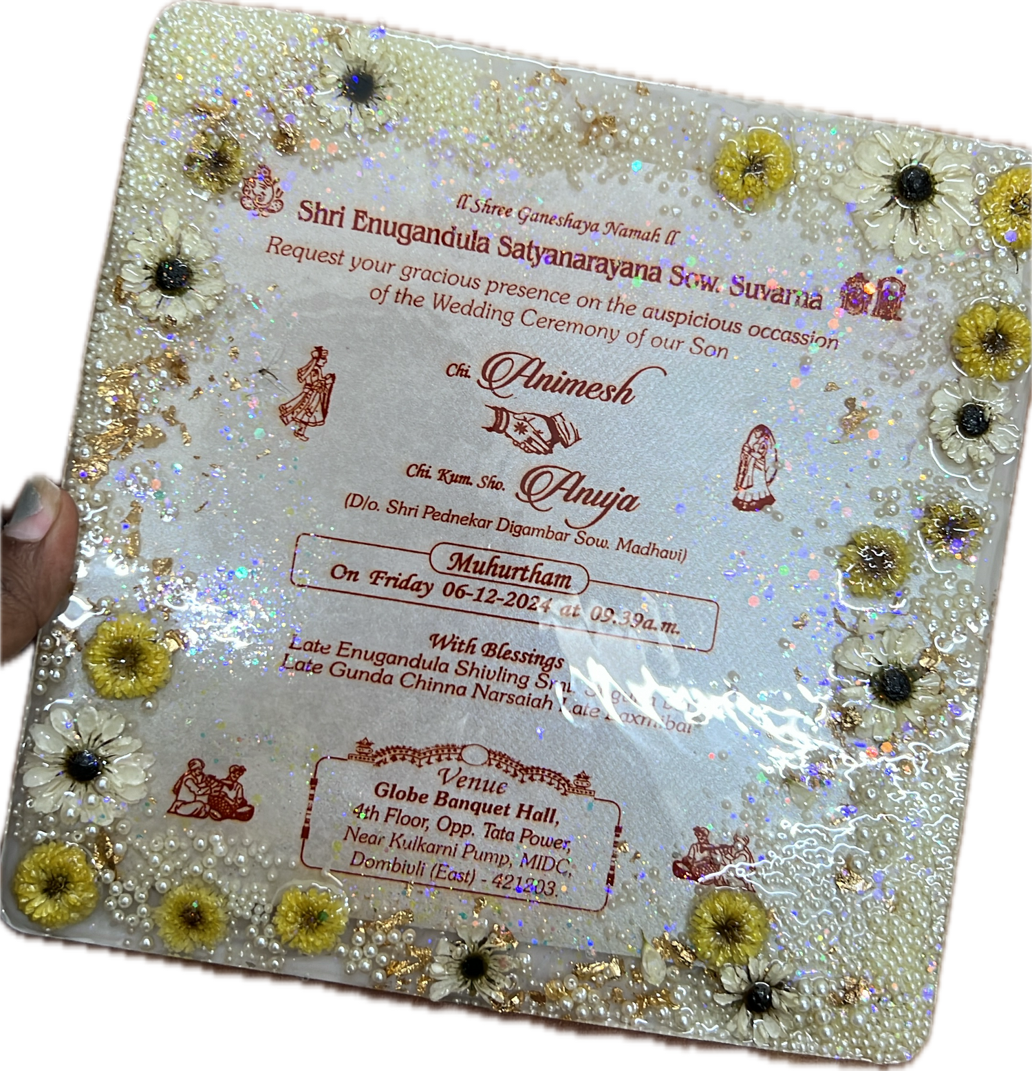 "Elegance Redefined: Handcrafted Pearl & Gold Resin Pooja Thali"